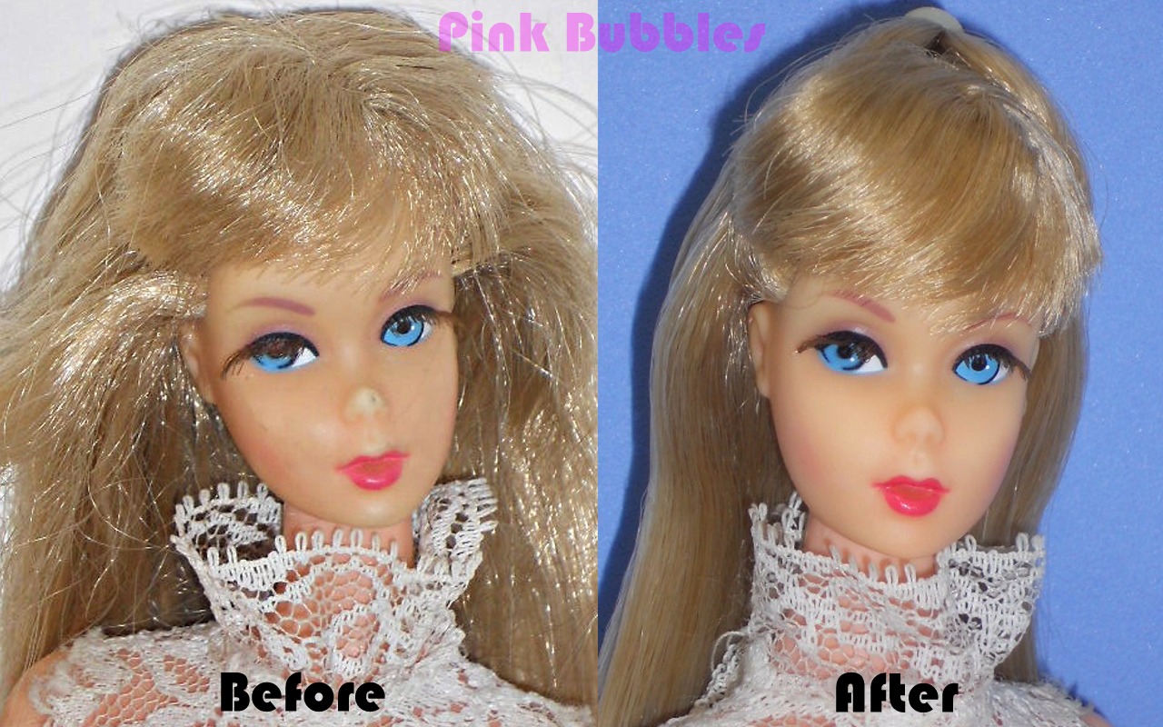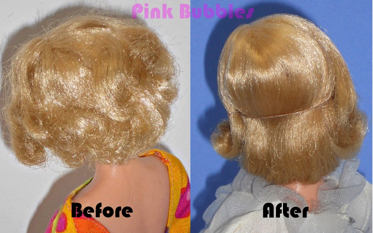 Much hipper than Dot’s pigtail’s, Francie’s signature flip style was restored with great results!
