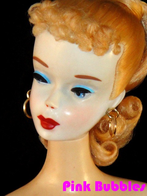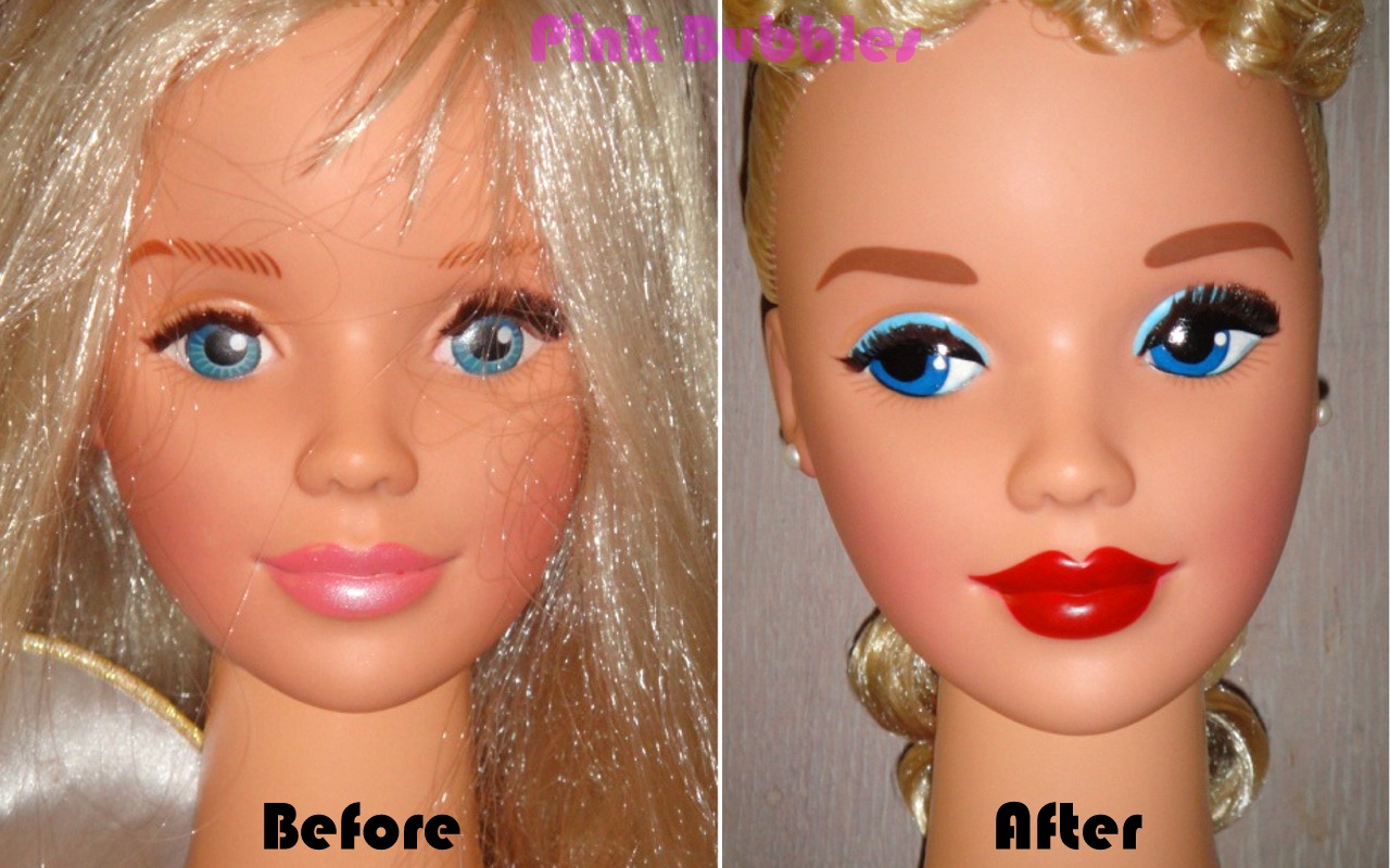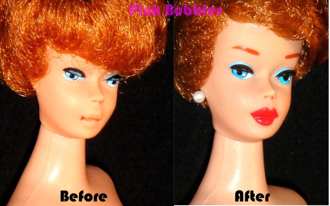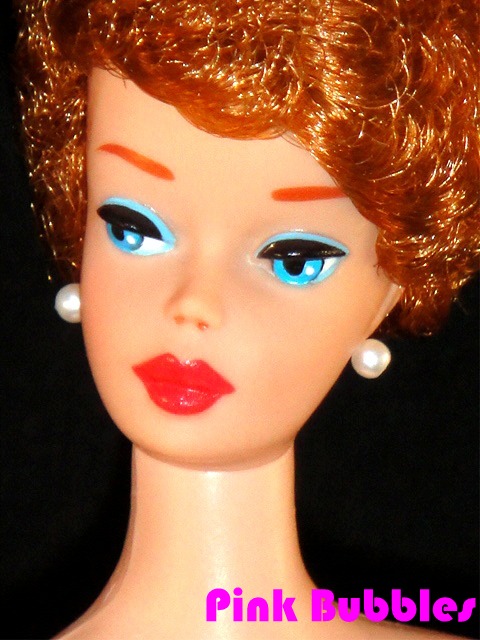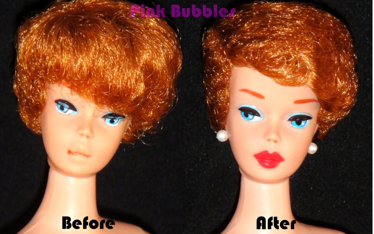 Steven’s gorgeous Swirl Barbie had an attentive audience here at the Pink Bubbles Doll Spa! She began with our wonderful P. B. Beauty Bath for Face & Body. Her shocking red tresses were styled into the classic swirl hairdo. A softer hand was used to give her an elegant new make-up, fit for the classiest of nightclubs. I doubt you’ll find a more scintillating siren anywhere!